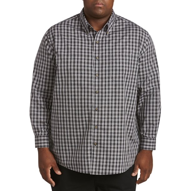 Harbor Bay By Dxl Big And Tall Men S Grid Pattern Sport Shirt Black 3xl Tall Walmart Com